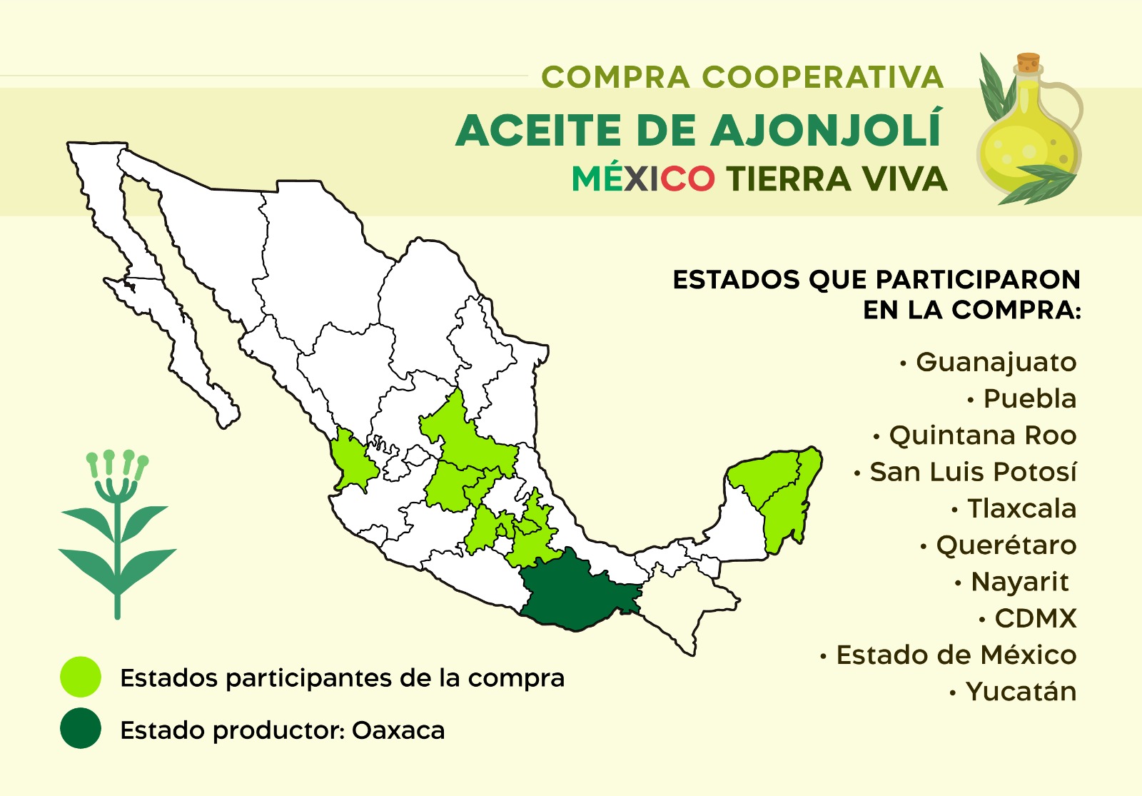Les comparto el Mapa de México mostrando los Estados desde donde diferentes personas apoyaron la Conservación en Oaxaca a través de la Compra de sus Aceites de Ajonjolí agroecológico.
